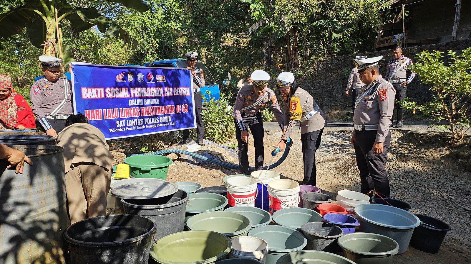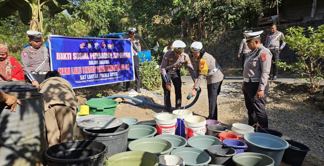Bakti sosial seperti pembagian air bersih yang dilakukan oleh Satlantas Polres Gowa yang dipimpin Kasat Lantas Polres Gowa AKP Ida Ayu Made Ari Suastini, S.H itu menyasar warga Dusun Bollangi, Desa Timbuseng, Kecamatan Pattallassang Kabupaten Gowa, Kamis (12/9).