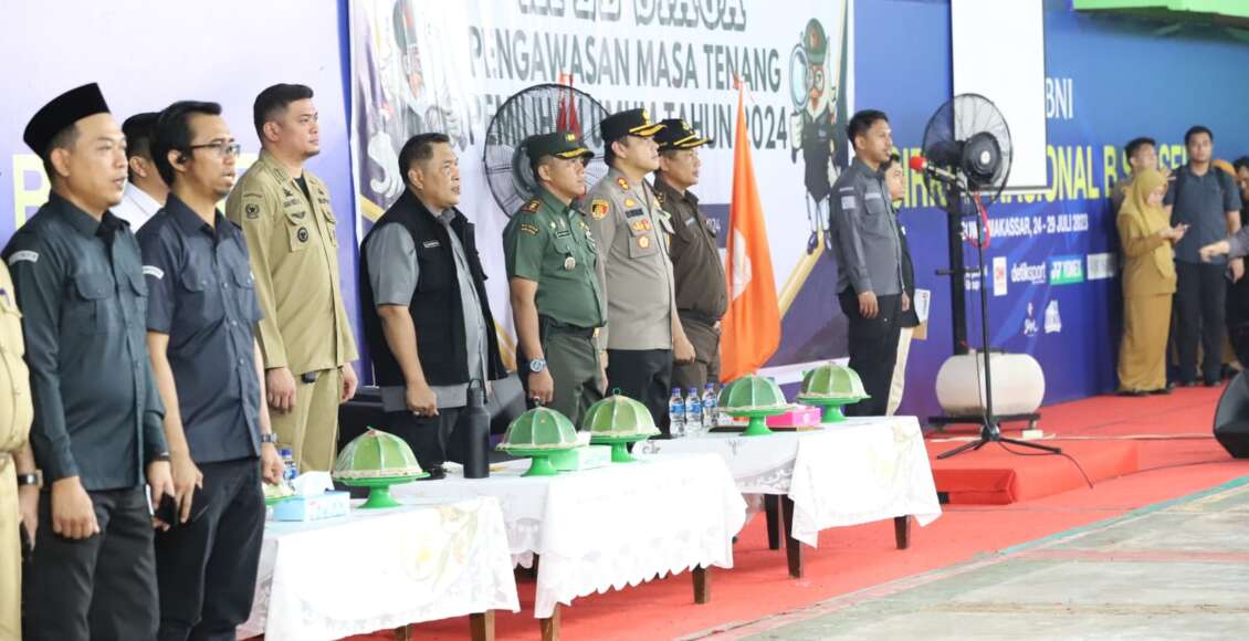 GOWA,ikagawanews.id – Kepala Kepolisian Resort Gowa AKBP R.T.S Simanjuntak, S.H., S.I.K., M.M., M.I.K bersama jajaran Forkopimda turut hadir dalam Apel Siaga Pengawasan Masa Tenang Pemilu Tahun 2024 yang digelar di Gedung Olahraga Kabupaten Gowa, Senin (12/2/2024).