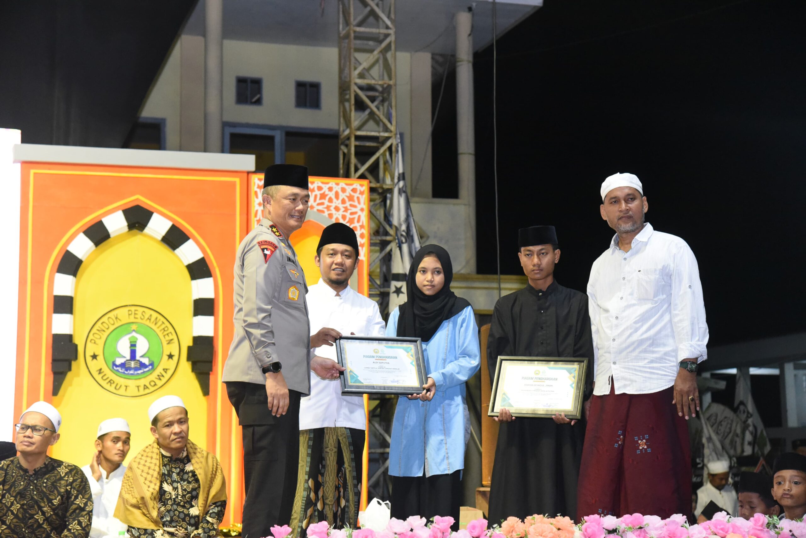 Mengakhiri sambutannya di Haul Ponpes Nurut Taqwa ke 48, Kapolda Jatim memberikan door prize berupa dua TV, dua Kulkas dan dua sepeda gunung kepada santri yang bisa menjawab pertanyaan dari Kapolda Jatim Irjen Pol. Drs. Imam Sugianto, M. Si. (*)