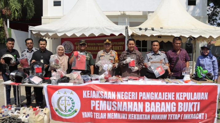 Pemusnahan barang bukti tersebut dilakukan di halaman belakang kantor Kejari Kab. Pangkep, yang dihadiri oleh Kapolres Pangkep Akbp Ari Kartika Bhakti, S.I.K., M.K.P., Dandim 1421 Pangkep Letkol Inf Fajar, Kajari Pangkep Toto Roedianto, S,Sos., M.H., Ketua PN Pangkep Galih Dewi Inanti Ahmad, S.H., Ka Lapas Kelas B Pangkep Hakim Sanjaya, A.Md.Ip., S.H., M.H., Kasat Narkoba Akp Syaharuddin, S.Ap., Kasat Reskrim Iptu Prawira Wardani, S.Tr.k., S.I.K., Kasi Humas Polres Pangkep Akp Imran, S.H., Para Kasi, Pejabat Kasubsi, Jaksa Fungsional staf Kajari Kab. Pangkep.