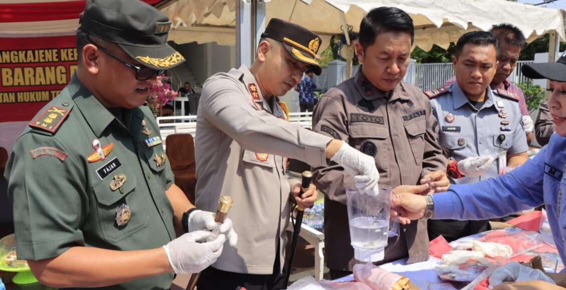 “Pemusnahan barang bukti ini kita lakukan dengan cara dibakar dan untuk jenis obat-obatan kita blender lalu dilarutkan kedalam air, sehingga tidak dapat dipergunakan lagi,” jelasnya.