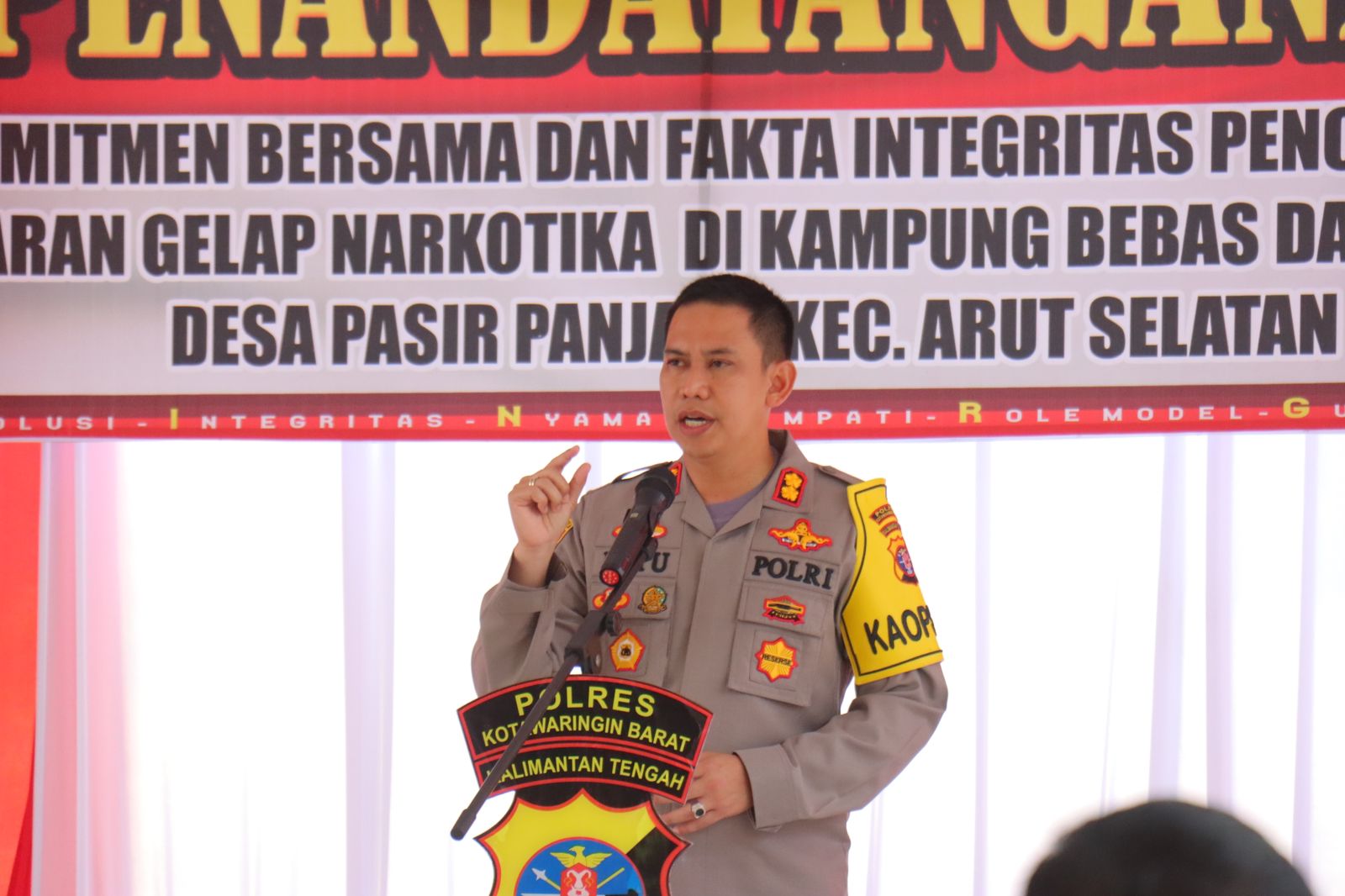 Kapolres Kotawaringin Barat dalam sambutannya menekankan bahwa Desa Pasir Panjang adalah Desa yang dijadikan Pilot Project sebagai Desa atau Kampung Bebas Narkoba dan akan dilanjutkan kepada desa atau kelurahan lainnya di masing -masing kecamatan.