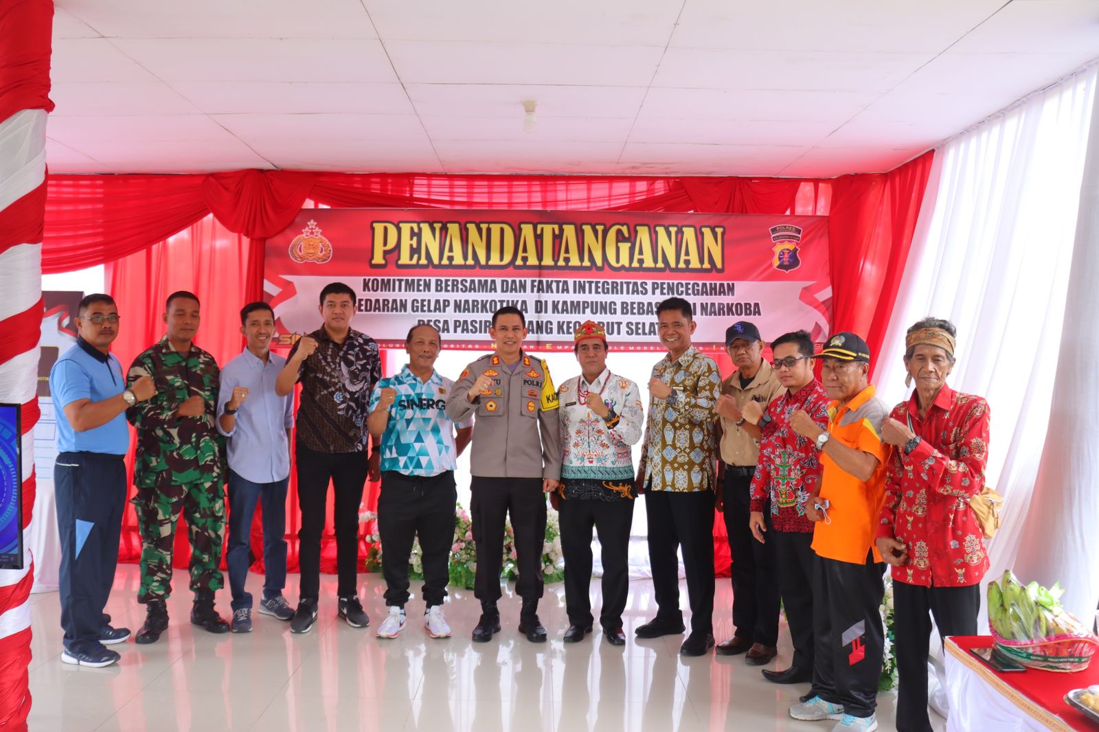 KOTAWARINGIN BARAT,ikagawanews.id – Kapolres Kotawaringin Barat AKBP Bayu Wicaksono, S.H., S.I.K., M.Si menghadiri acara Penandatanganan Komitmen Bersama dan Pakta Integritas tentang Penanggulangan Narkoba di Kampung Bebas Narkoba,Jumat 15 September 2023, pukul 08.30 wib,bertempat di Rumah Betang Desa Pasir Panjang Kecamatan Arut Selatan.