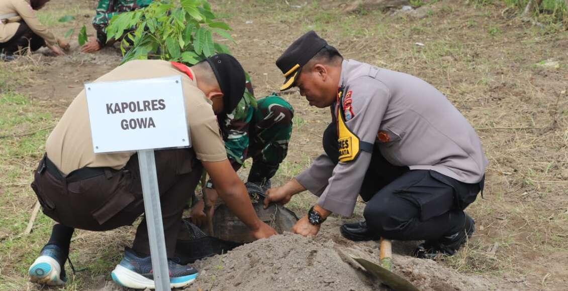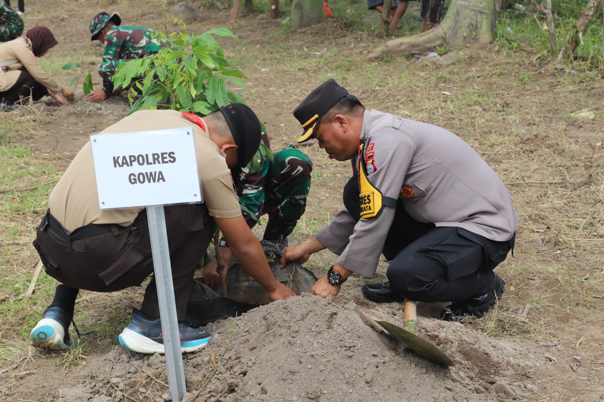 GOWA,ikagawanews.id – Wakapolres Gowa Kompol Soma Mihardja, S.Sos., M.M yang mewakili Kapolres Gowa AKBP R.T.S Simanjuntak, S.H., S.I.K., M.M., M.I.K menghadiri kegiatan penanaman pohon Reboisasi Massal bersama Pangkostrad yang digelar di Baruga BBWS Pompengan Jeneberang, Jalan Poros Sungguminasa, Kelurahan Lanna, Kecamatan Parangloe Kabupaten Gowa, Kamis (22/2).