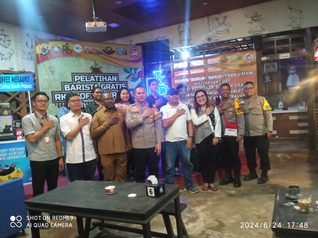 Kegiatan pelatihan ini dengan tema peran Polri menghidupkan UMKM masyarakat orang asli papua, melalui pelatihan barista secara gratis dan pembagian bantuan peralatan usaha kopi di Kabupaten Merauke,”