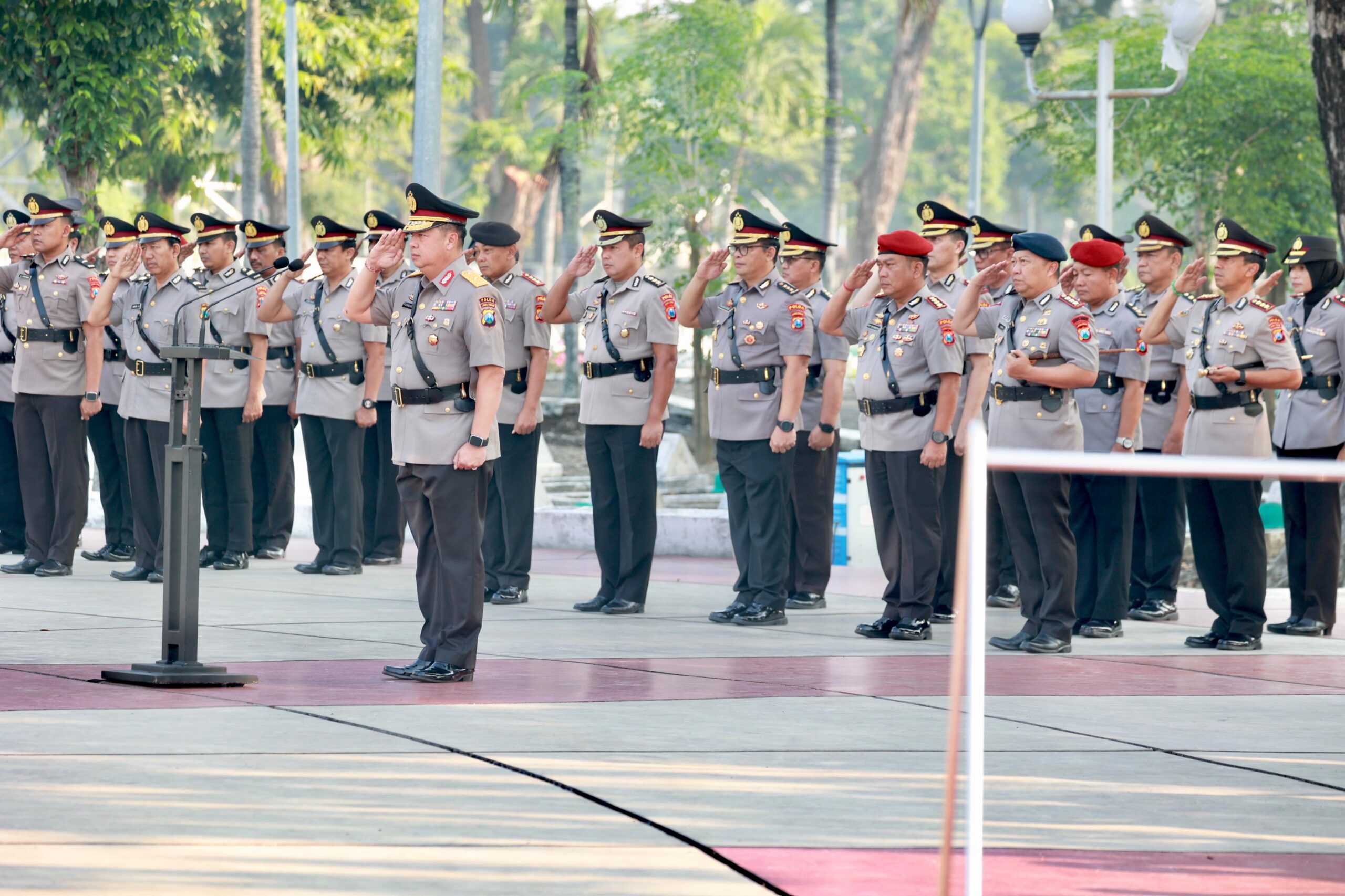 Mewakili Kapolda Jawa Timur, Irjen Pol Nanang Avianto,M.Si, Direktur Reserse Kriminal Umum (Direskrimum) Polda Jatim, Brigjen Pol.Farman memimpin kegiatan tersebut diikuti oleh para Pejabat Utama dan personel gabungan satuan kerja Polda Jatim.