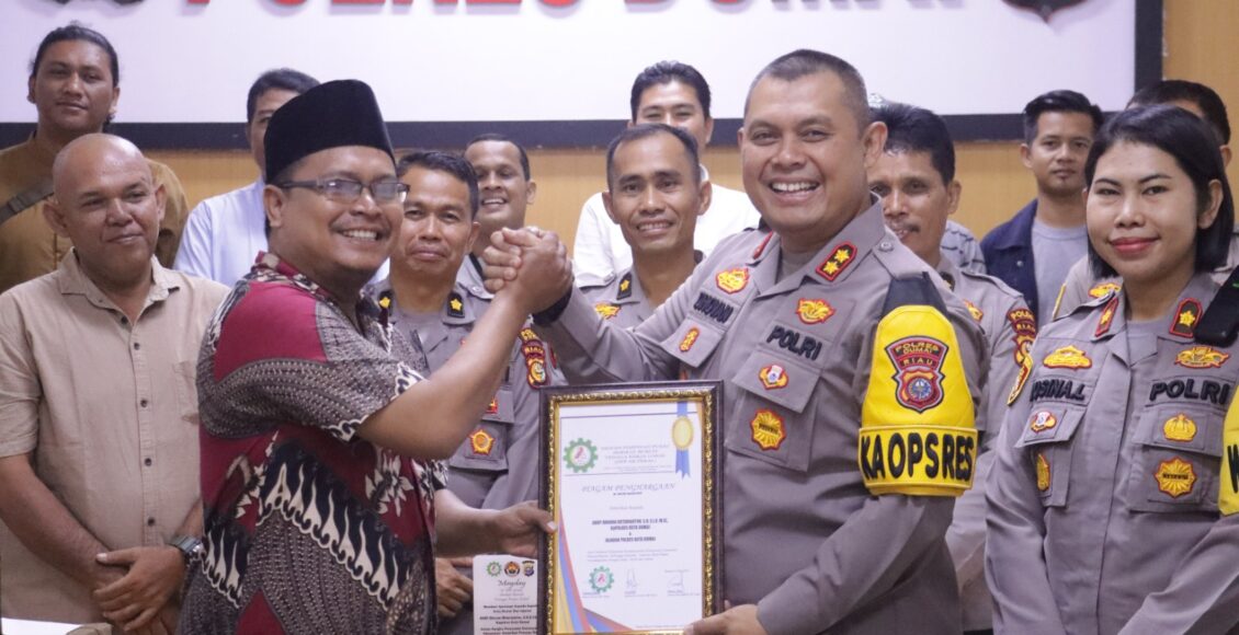 Bertempat di Ruangan Command Center Lt. II Polres Dumai, agenda audiensi sekaligus penyerahan Plakat dan Piagam Penghargaan kepada Kapolres Dumai dan Jajaran dihadiri langsung oleh Kapolres Dumai AKBP Dhovan Oktavianton, S.H, S.I.K, M.Si, Wakapolres Dumai Kompol Josina Lambiombir, S.H, S.I.K, M.M, Kabag Ops Polres Kompol Mahendra Yudhi Lubis, S.H, M.H, Kabag Log Polres Dumai Kompol Masrial Tanjung, S. Sos, Kabag Ren Polres Dumai Kompol R. Simamora, S.H, Kabag SDM Polres Dumai Kompol Jasman, Kasat Intelkam Polres Dumai AKP Sarasi Sijabat, S.H, Kasat Narkoba Polres Dumai Iptu Mardiwel, S.H, M.H, Ps. Kanit III Sosbud Sat Intelkam Polres Dumai Bripka Endra Allen Manurung, Ketua Umum SB TEKAL Kota Dumai Ismunandar beserta Anggota.