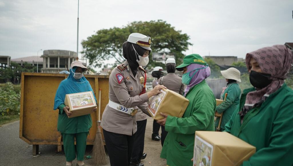 Hari Kartini, Polwan Satlantas Polres Lhokseumawe Gunakan Pakaian Adat Aceh dan Berbagi Sembako