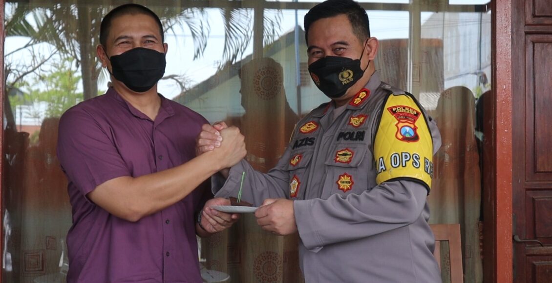 Kedatangan rombongan Kapolres Gresik AKBP Mochamad Nur Azis bersama Wakapolres Gresik Kompol Ari Galang Saputro dan PJU Polres Gresik membuat rumah dinas Dandim 0817/Gresik mendadak ramai diiring lagu selamat ulang tahun dan kue ulang tahun.