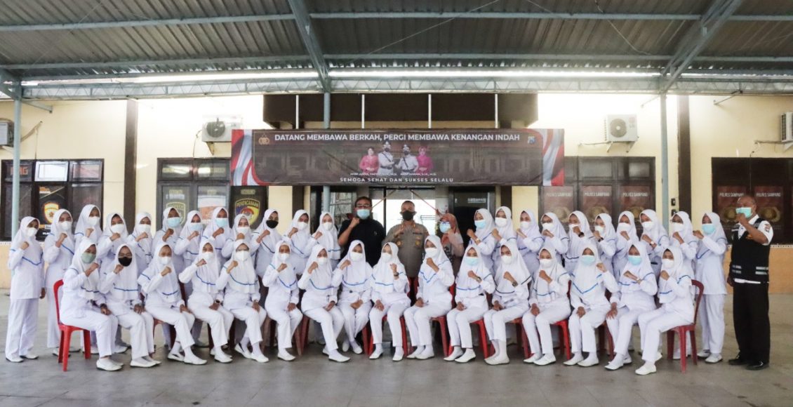 Kapolres Sampang AKBP Arman S.IK, M.Si yang di dampingi Kasat Intel Polres Sampang AKP Khoirul Anwar SH, MH dan Paurkes Polres Sampang Ipda Muhson mengucapkan terima kasih atas kedatangan 40 mahasiswi sebagai perwakilan Akbid Graha Husada yang hadir dalam pengarahan dan persamaan persepsi tentang vaksinasi Covid-19 di Kabupaten Sampang.