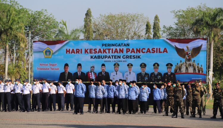 Pelaksanaan upacara Peringatan Hari Kesaktian Pancasila 2021 yang bertindak sebagai Inspektur Upacara adalah Bupati Gresik Fandi achmad yani,SE,dengan tema “Indonesia Tangguh Berlandaskan Pancasila” yang diikuti oleh satu peleton dari TNI/Polri, Sat Pol PP, Dishub dan para tamu undangan itu berjalan dengan khidmat.
