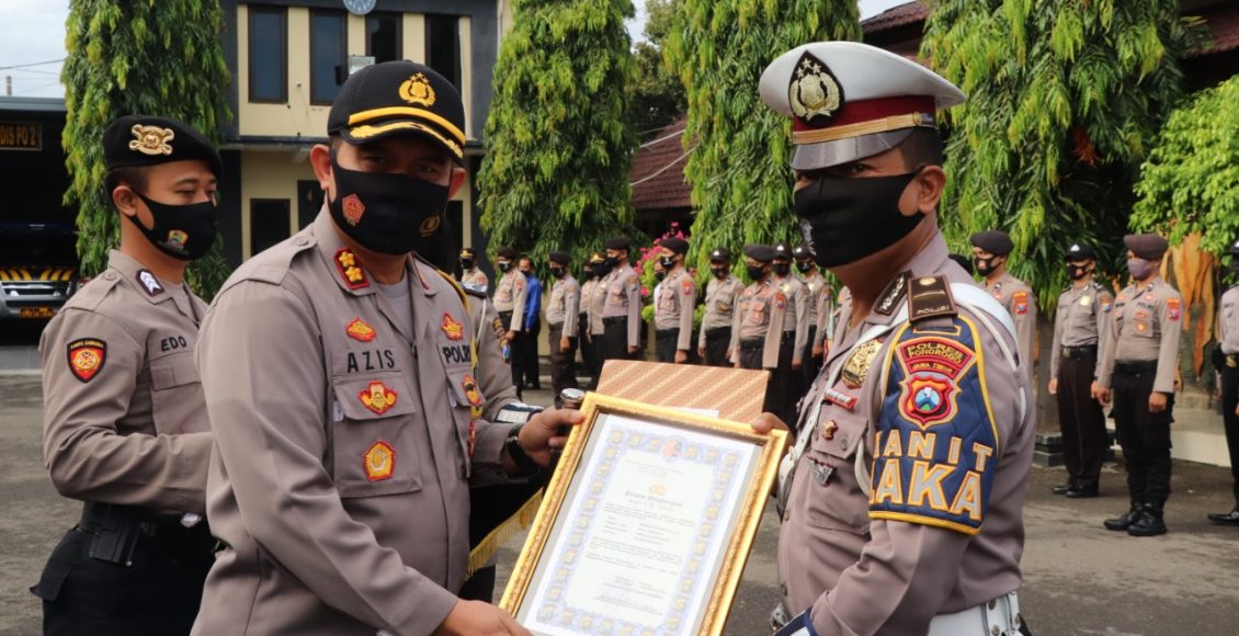 Dengan Pimpinan Apel Kapolres Ponorogo, AKBP. Azis pun memberikan Penghargaan Kepada Personil Lalu Lintas yang Berprestasi yaitu Kanit Laka Imamuddin M, S.H., bersama Anggota Bripka Anggara F, S.H., Bripka Deny Irawan, Briptu Aris Kurniawan, Bripka Ardhian Budi P yang telah berhasil Ungkap Kasus Tabrak Lari serta Kanit Patroli Ipda Aris Wibawa, S.H., dan Aipda Rudiyanto yang telah berhasil mengungkap kasus Illegal Loging.