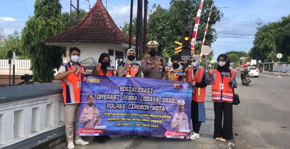 Kegiatan sosialisasi Ops.Zebra Lodaya 2022 mendapatkan respon positif dari para pengendara di seputaran palang pintu rel kereta Api di jalan Kartini Kota Cirebon dengan menggandeng bersama IRPS ( Indonesian Railway Preservation Society ) Komunitas Pecinta Kereta Api Indonesia Kota Cirebon, Minggu (16.10.22).