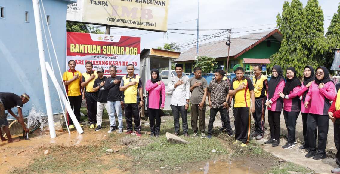 Hut Bhayangkara 78, Polres Pangkep Bantu Sumur Bor di Lapangan Sepak Bola Minasatene