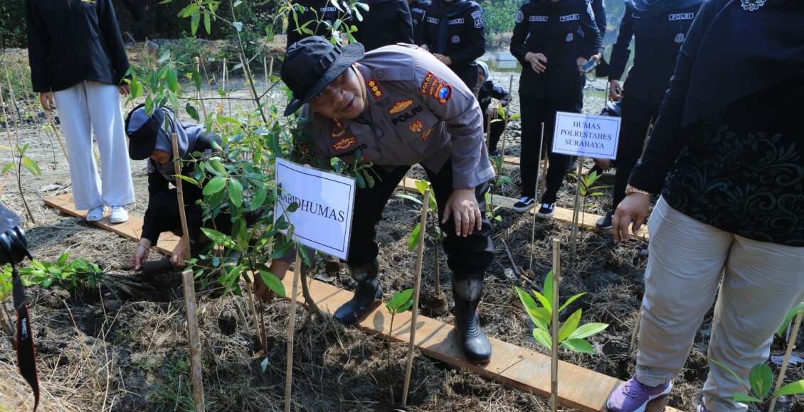 Kabid Humas Polda Jatim Kombes Pol Dirmanto menyampaikan, kegiatan ini bertujuan untuk mengembalikan habitat dan melindungi daerah pesisir dari perubahan iklim.