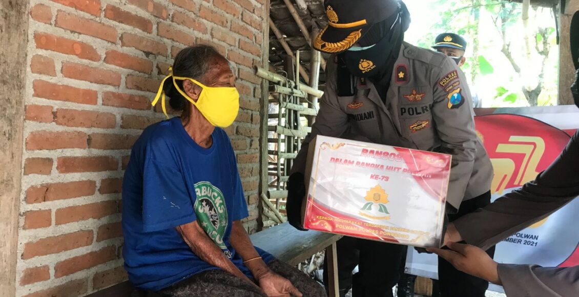 HUT Ke -73, Polwan Polres Ponorogo Bagikan Sembako Kepada Warga Terdampak COVID -19
