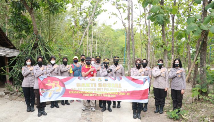 PONOROGO,IKAGAWANEWS.ID –  Memperingati HUT ke 73 Polisi Wanita( Polwan) tahun 2021 Polwan Polres Ponorogo melaksanakan kegiatan bakti sosial dengan membagikan paket sembako kepada masyarakat yang terdampak Covid-19, Jumat(20/08/2021).
