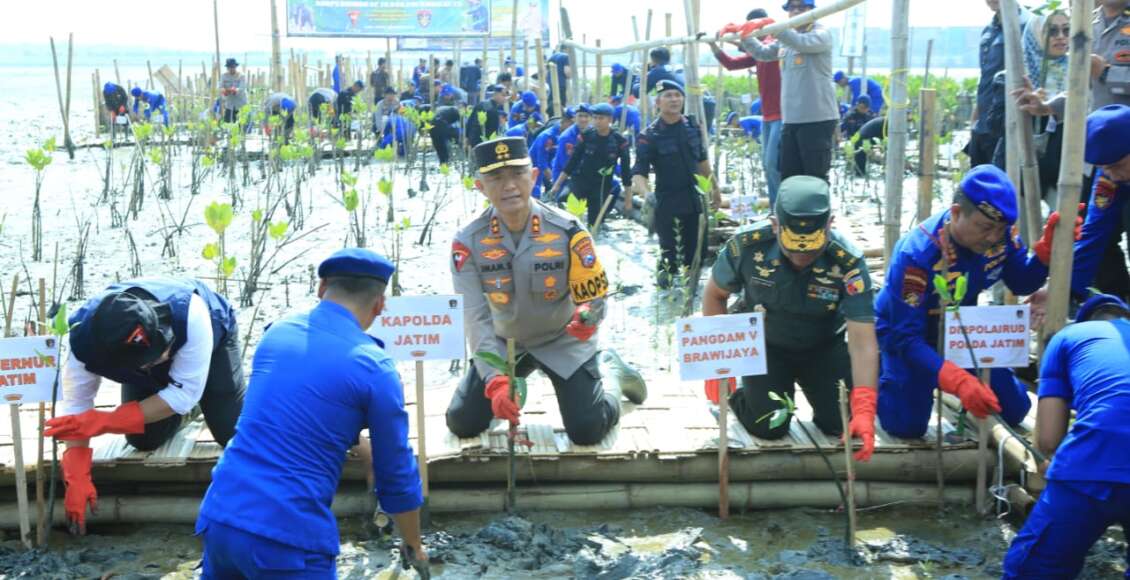 Kapolda Jatim ini menyebut ada lebih kurang 18.300 bibit mangrove secara keseluruhan yang ditanam serentak diseluruh wilayah Jawa Timur.’