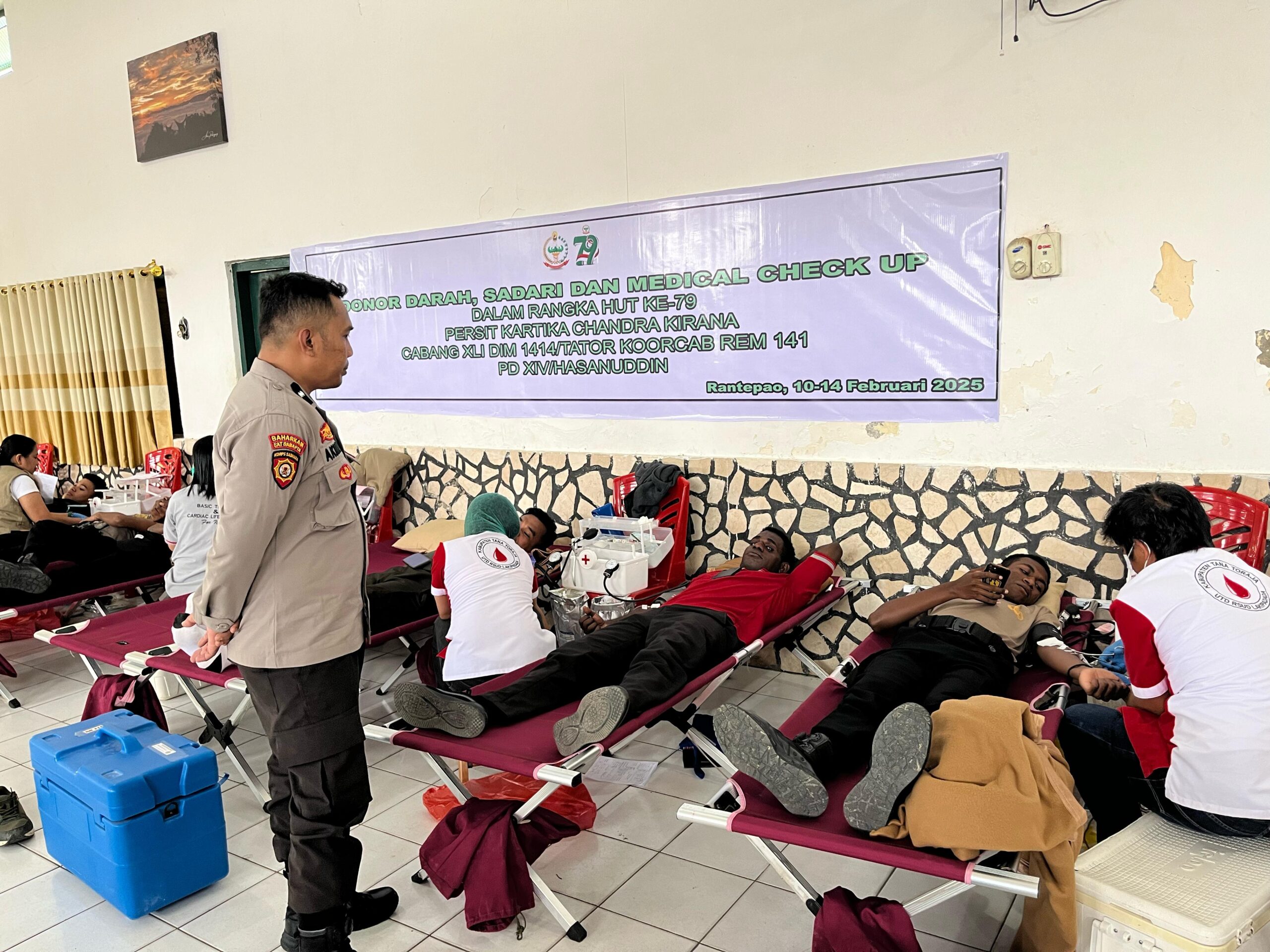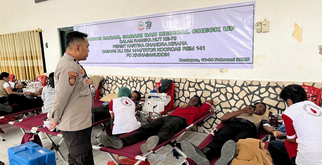 Tana Toraja,ikagawanews.id – Sebagai bentuk sinergitas dan kepedulian terhadap sesama, personil Polres Tana Toraja (Tator) Polda Sulsel turut serta dalam aksi donor darah yang diselenggarakan di Makodim 1414 Tana Toraja, Jumat 14 Februari 2025.