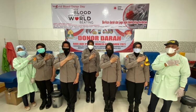 PONOROGO,IKAGAWANEWS.ID – Masih dalam suasana Pandemi COVID 19, sebagai wujud peduli sesama dan sosial, Polwan Polres Ponorogo dipimpin senior Polwan juga selaku Waka Polres Ponorogo Kompol Meiridiani, S.H., M.H menggelar donor darah bertempat di kantor Palang Merah Indonesia Jl. Dr. Soetomo Ponorogo. Selasa (31/08/2021)