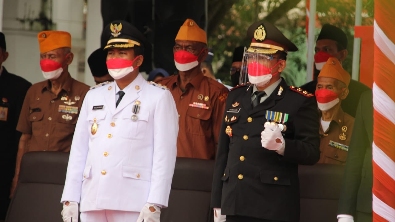 Dalam perayaan HUT RI ke 76 yang bertemakan Indonesia tangguh, Indonesia tumbuh ini, Bupati juga mengajak seluruh elemen untuk berdoa bersama agar pandemi covid 19 ini diangkat dari Bumi.