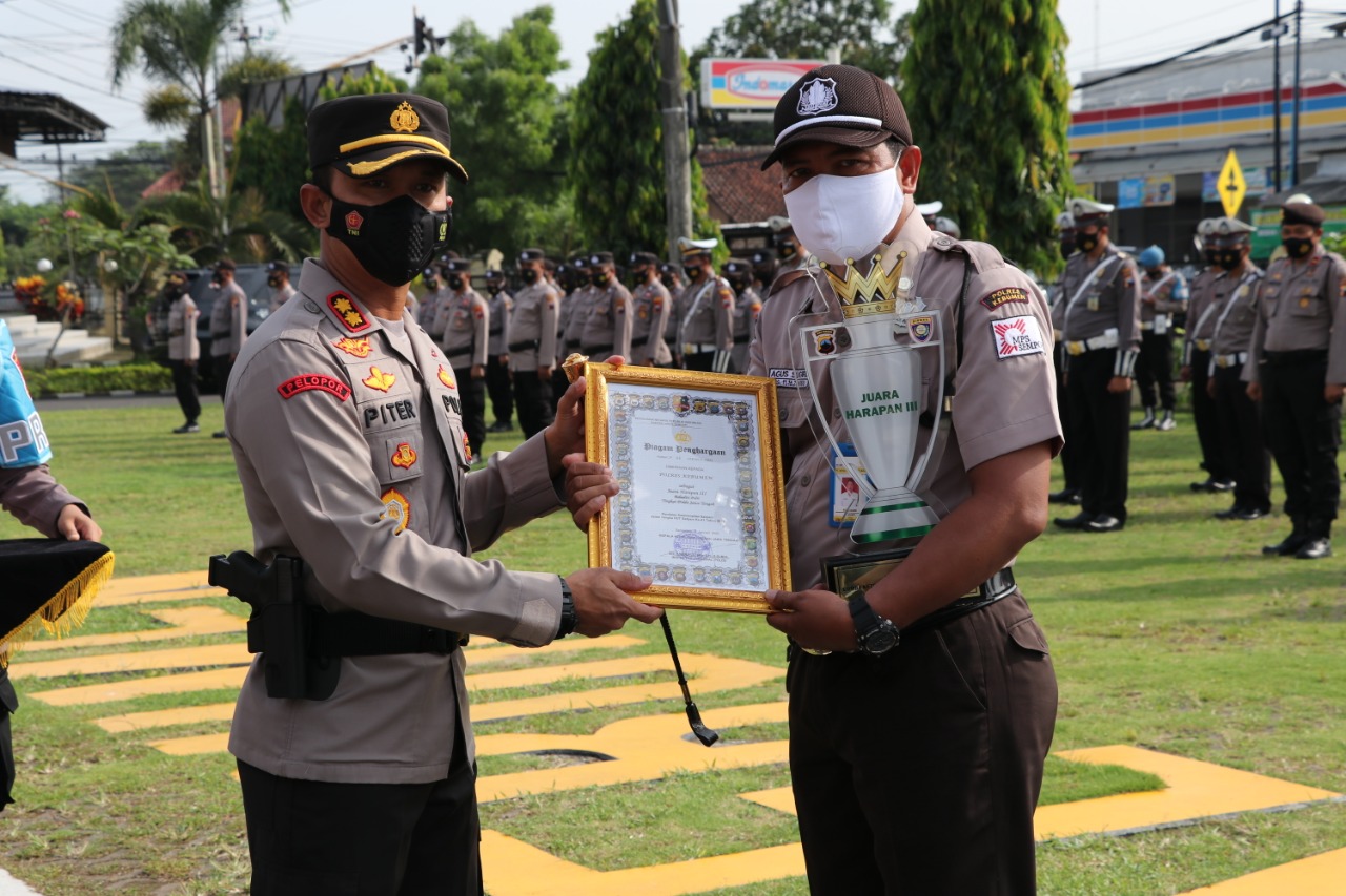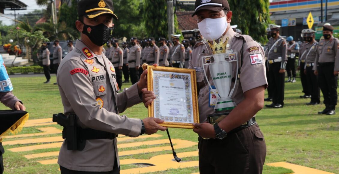 Selanjutnya, secara simbolis, Kapolres Kebumen menyerahkan trophy dan piagam penghargaan kepada Satpam di bawah binaan Sat Binmas yang telah meraih juara harapan 3, kategori lomba bela diri tingkat Polda Jateng tahun 2021.