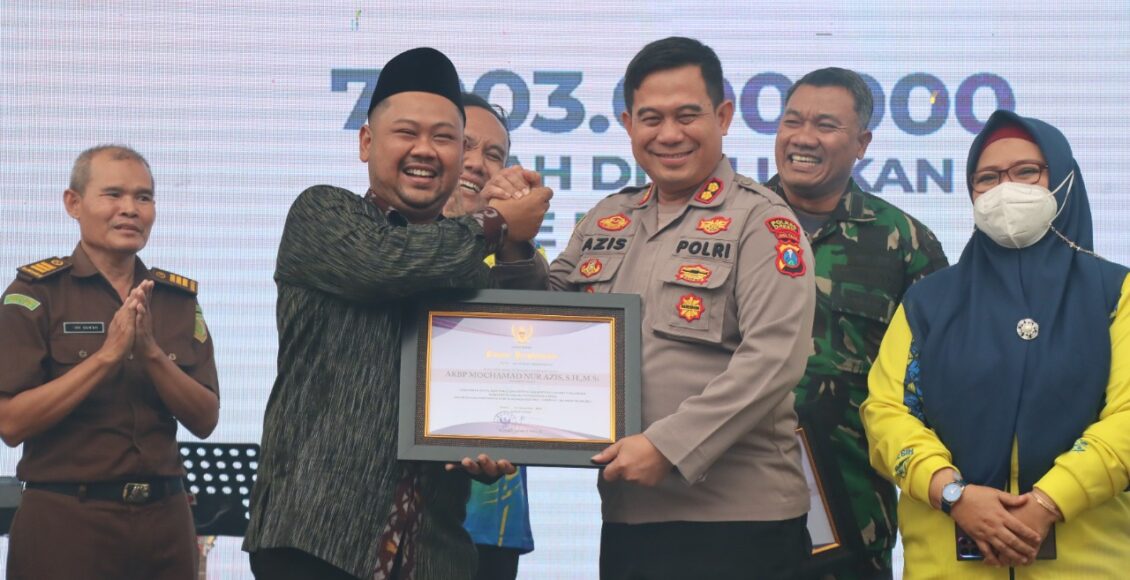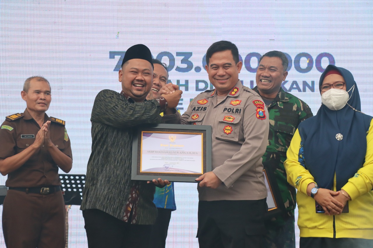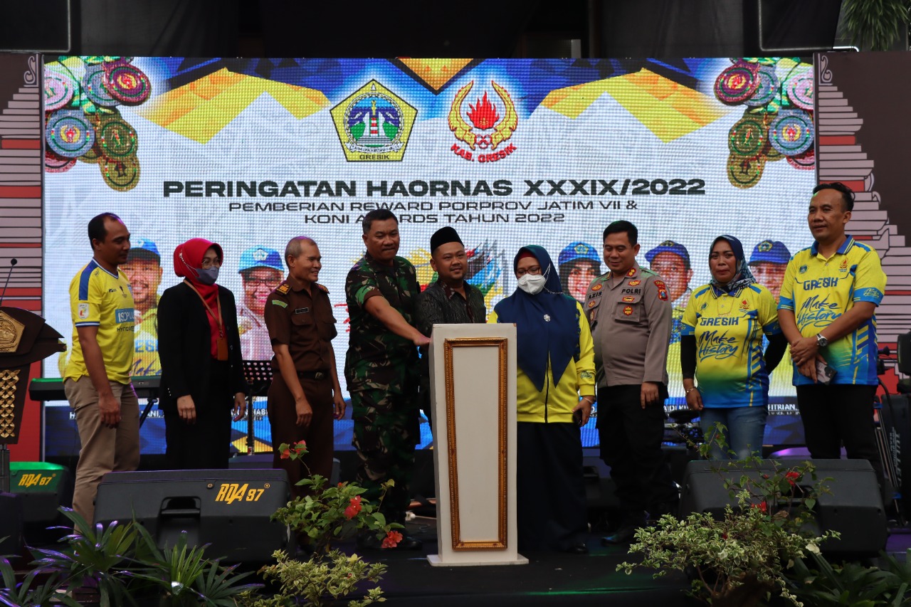 Penghargaan kontribusi dan peduli olahraga institusi atau aparat Kabupaten Gresik, diberikan kepada Kapolres Gresik AKBP Mochammad Nur Aziz dan Dandim 0817 Gresik Letkol Inf. Ahmad Saleh Rahanar.