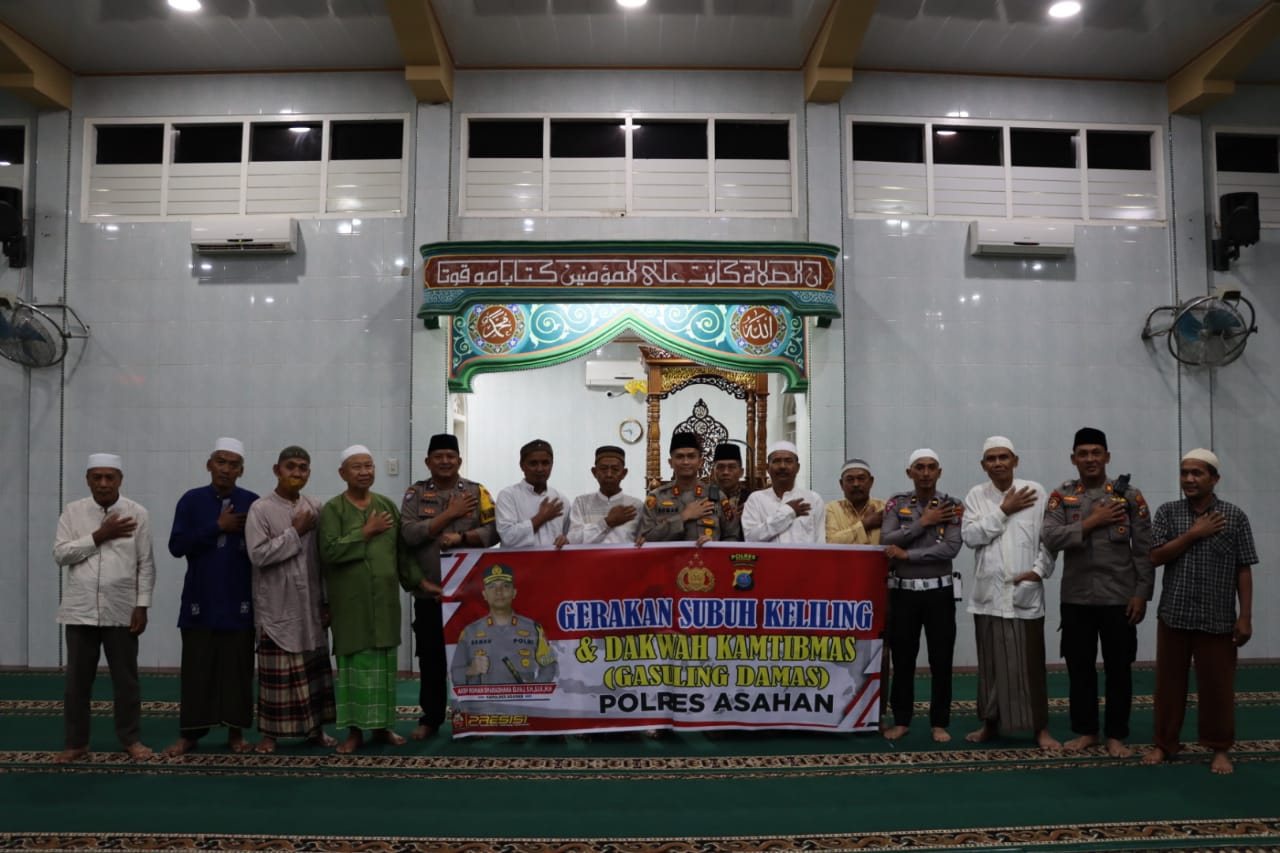 ASAHAN,ikagawanews.id – Kapolres Asahan AKBP Roman Smaradhana Elhaj, SH, SIK, MH Didampingi Kasat Samapta Polres Asahan AKP Ilham Harahap SH, MH, Bhabinkamtibmas Polsek Kota Kisaran Aiptu Ismail Pulungan,dan Kanit Turjawali Satlantas Polres Asahan Ipda Syamsul menggelar, Gerakan Subuh Keliling dan Dakwah Kamtibmas (Gasuling Damas) di Masjid Istiqomah jalan Jend.Sudirman Lingkungan I Kelurahan Bunut Barat Kecamatan Kisaran Barat Kabupaten Asahan Jumat (09/12/2022) sekira jam 04.50 wib.