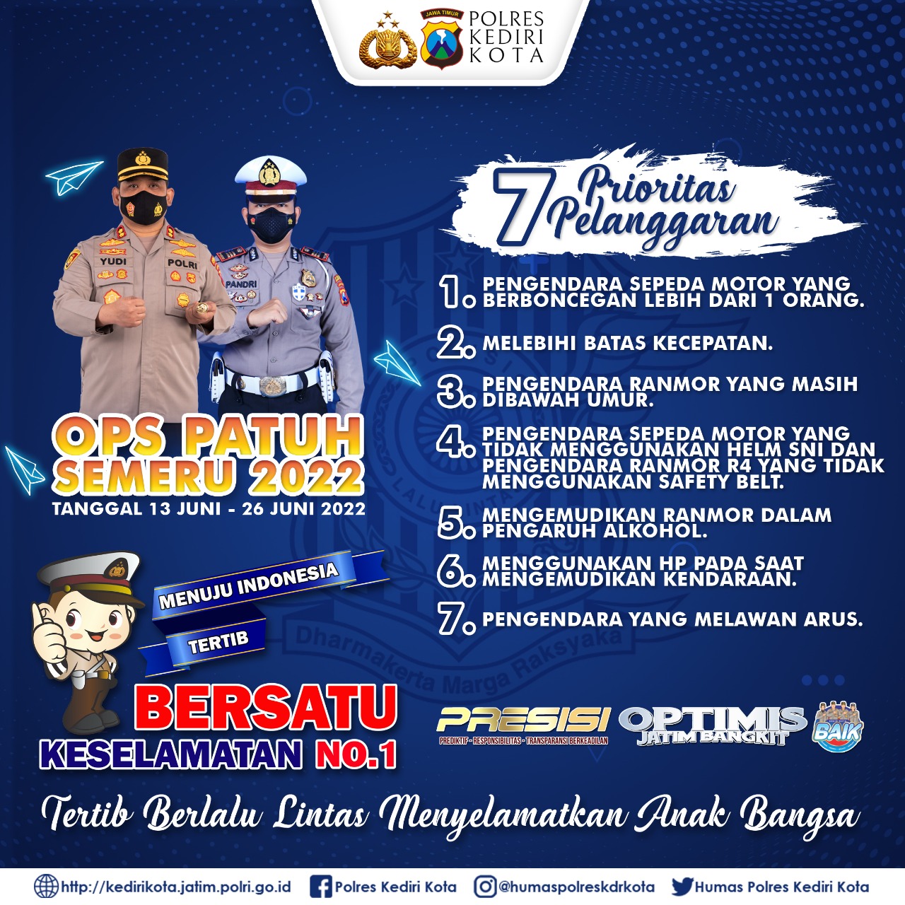 “Ada tujuh target atau sasaran yang menjadi priotitas dalam Operasi Patuh Semeru 2022 ini,” ungkap Kasi Humas Polres Kediri Kota Ipda Nanang Setyawan, S.H.