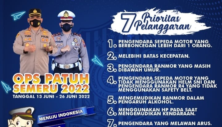 Ipda Nanang Setyawan S.H. mengungkapkan Operadi Patuh Semeru 2022 ini berlangsung 14 hari. Mulai 13 hingga 26 Juni 2022. Dalam operasi ini nanti sekaligus melakukan inovasi dengan meningkatkan modernisasi teknologi informasi.