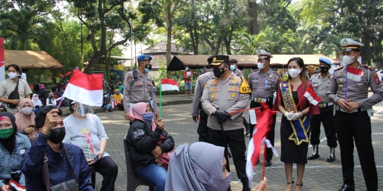 Inilah Cara Kapolres Kediri Kota Bangkitkan Semangat Patriotisme kepada 1000 Warga Kota Kediri yang Ikuti Vaksinasi