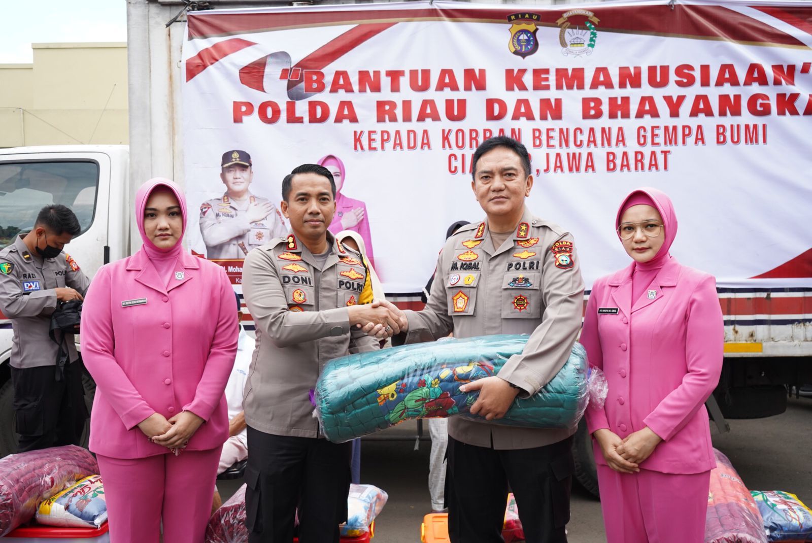 Tidak dengan tangan kosong, rombongan Irjen Iqbal itu membawa sembilan truk sembako yang merupakan bantuan kemanusiaan Polda Riau untuk korban gempa Cianjur.