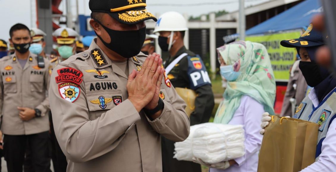Irwasum Polri memberikan bantuan berupa sarung tangan, hand sanitizer, masker serta sedikit makanan ringan untuk petugas dan para pengemudi yang melintas di Gerbang Tol Kalikangkung. Komjen Pol Agung juga ingatkan personel untuk menggunakan masker, dan selalu gunakan sarung tangan.