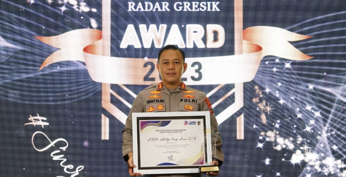 Gresik,ikagawanews.id – Kapolres Gresik AKBP Adhitya Panji Anom menerima penghargaan Radar Gresik Award 2023 dalam rangka HUT Radar Gresik ke-11. Kinerja jajaran Polres Gresik dalam menjaga keamanan dan ketertiban masyarakat (Kamtibmas) diganjar penghargaan dari Radar Gresik.