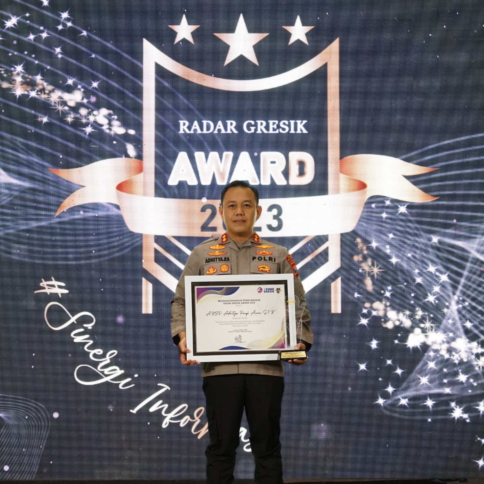 Kapolres Gresik AKBP Adhitya Panji Anom menyampaikan ucapan terima kasih kepada Radar Gresik yang telah memberikan perhargaan Radar Gresik Award 2023. Kapolres mengatakan penghargaan ini sebagai pemacu semangat untuk meningkatkan pelayanan.