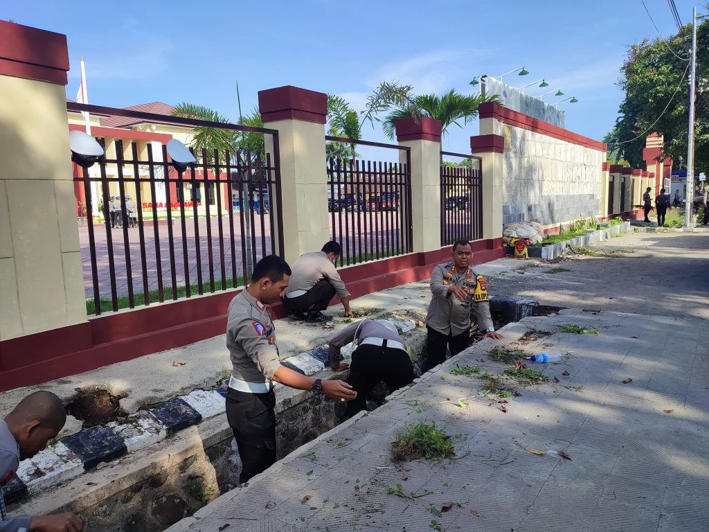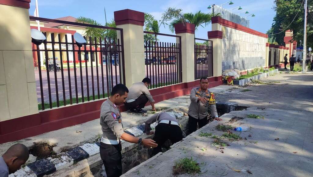Dalam kesempatan itu, AKBP Heru juga tidak segan ikut turun ke dalam selokan yang ada di depan Mako untuk membersihkan selokan dari sampah dan rerumputan.
