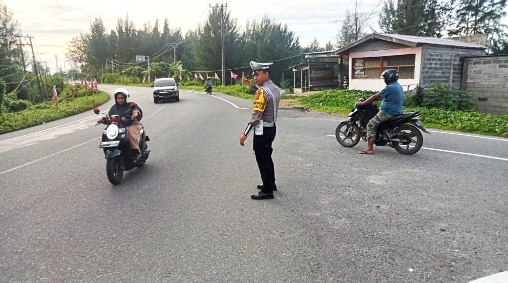 Jaga Ketertiban Lalu Lintas dan Kurangi Risiko Kecelakaan, Personel Satlantas Polres Aceh Jaya Lakukan Gatur Pagi