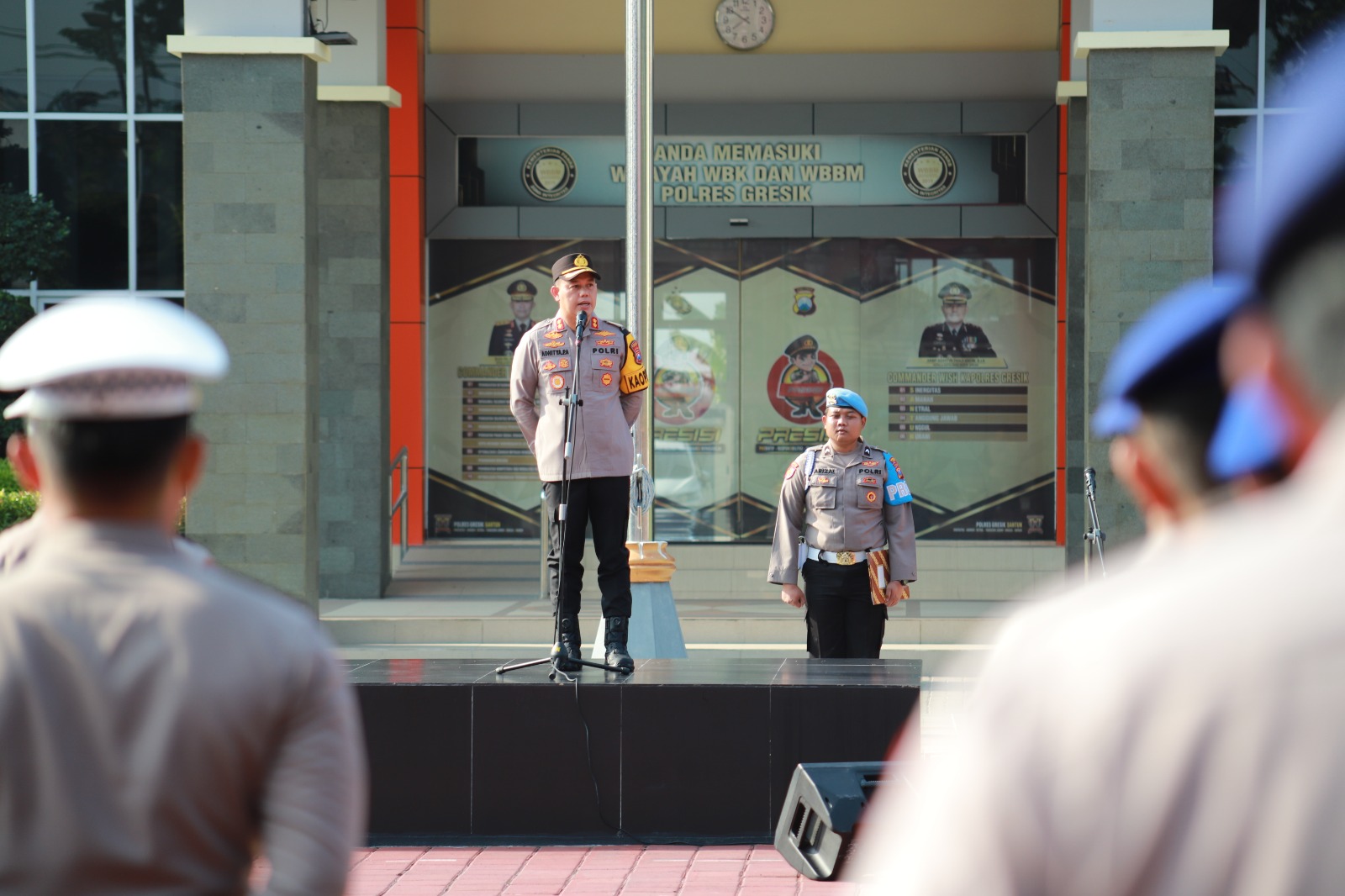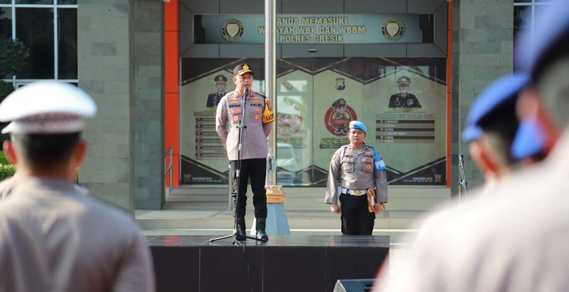 GRESIK,ikagawanews.id – Kapolres Gresik AKBP Adhitya Panji Anom menyampaikan rasa terimakasih yang sebesar-besarnya atas dedikasi dan kerja keras seluruh anggota dalam mengamankan jalannya Pemilu 2024 pada saat apel pagi di lapangan Mapolres Gresik.Senin (19-02-2024).