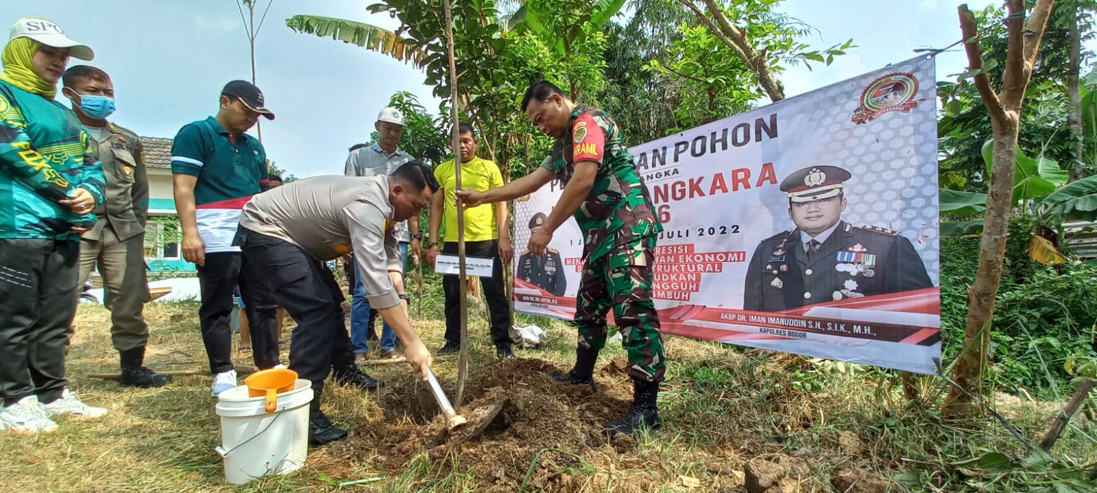 Di Selatan Kabupaten Bogor, Kapolres Bogor AKBP Iman Imanuddin bersama Plt Bupati Bogor Iwan Setiawan melakukan penanaman pohon di Ciliwung, Telaga Saat, Desa Tugu Utara Kecamatan Cisarua.