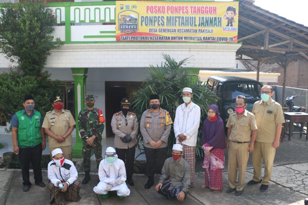 “Kapolres Malang ,memaparkan Malang raya terdapat 100 lebih Pasien Positif Covid 19, oleh karena itu perlu penerapan Protokol Kesehatan dalam kegiatan Santri di Ponpes Miftahul Jannah .