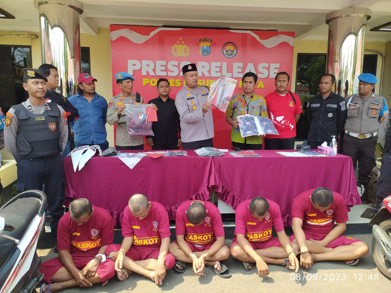 PASURUAN, ikagawanews.id – Kepolisian Resor (Polres) Pasuruan Kota menggelar Press Release keberhasilan Tim Resmob Suropati (TRS) Satreskrim Polres Pasuruan Kota dalam mengungkap jaringan Pelaku pasal 363 dan pasal 480, pada hari Jumat (08/09/2023).
