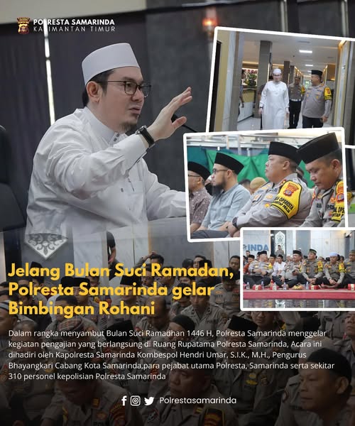 SAMARINDA,ikagawanews.id – Dalam rangka menyambut Bulan Suci Ramadhan 1446 H, Polresta Samarinda menggelar kegiatan pengajian yang berlangsung pada Sabtu, 22 Februari 2025, pukul 09.25 WITA di Ruang Rupatama Polresta Samarinda, Lantai 2, Mako Polresta Samarinda.
