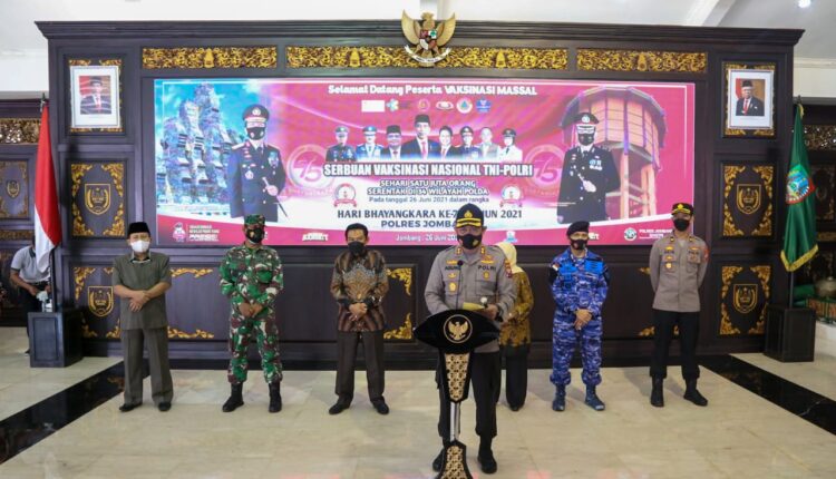 Jombang,IKAGAWANEWS.ID – Dalam rangka memperingati hari Bhayangkara ke 75, Polres Jombang menggelar vaksinasi massal dengan tema “Serbuan Vaksinasi Nasional TNI-Polri, sehari satu juta orang serentak di 39 wilayah Polda Jatim”.