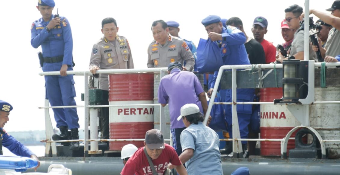 Setelah kegiatan dialog dan pemberikan santunan, Kapolda Jatim bersama rombongan berlayar ke Teluk Lamong dengan kapal Patroli Ditpolairud Polda Jatim.