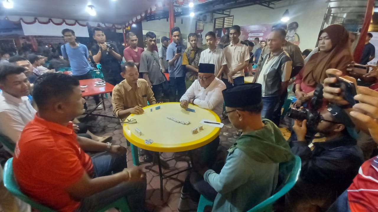 Diketahui jumlah peserta turnamen domino sebanyak 128 team yang mengikuti turnamen tersebut di Mako Polsek Tanjungpinang Timur, Rabu (18/6/2025) malam.