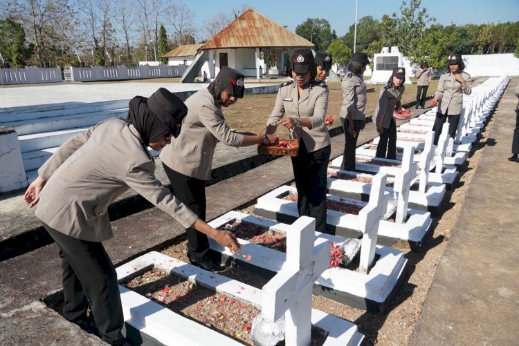 Jelang Hari Jadi Polwan ke 75, Srikandi Polwan Polres Belu Tabur Bunga di Taman Makam Pahlawan Seroja