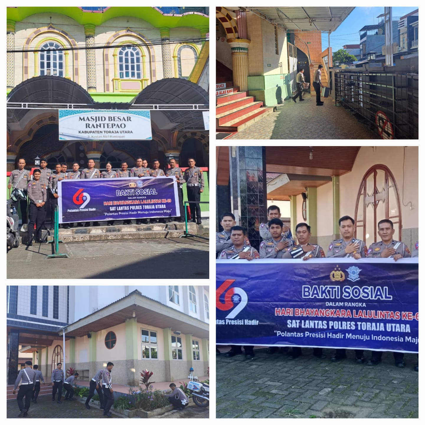 Selain itu, kegiatan ini juga merupakan bentuk kepedulian dan upaya Satuan Lalu Lintas untuk turut serta dalam menjaga kebersihan dan kenyamanan tempat ibadah, tambahnya.