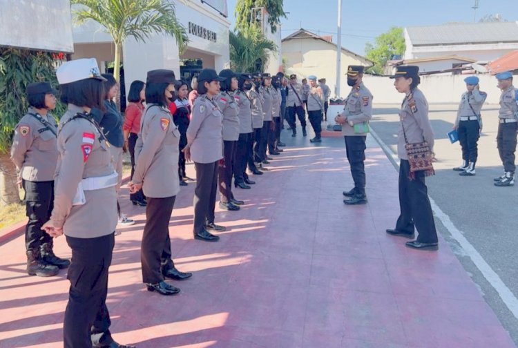Usai pelaksanaan apel pagi tadi pukul 08.30 wita,Kabag SDM, KOMPOL Yunior TM Duill selaku Pembina Polwan dan juga Kabag Ren,AKP Filomena Bene Bere,SH selaku Pakor Polwan, mengumpulkan seluruh Polwan yang dilanjutkan dengan pemeriksaan kerapian dan surat-surat kelengkapan diri.