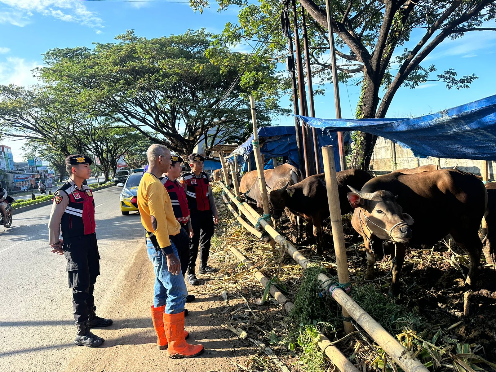 Jelang Idul Adha, Tim Patroli Kota Presisi Polres Gowa Gelar Patroli Dialogis di Tempat Pemotongan Hewan