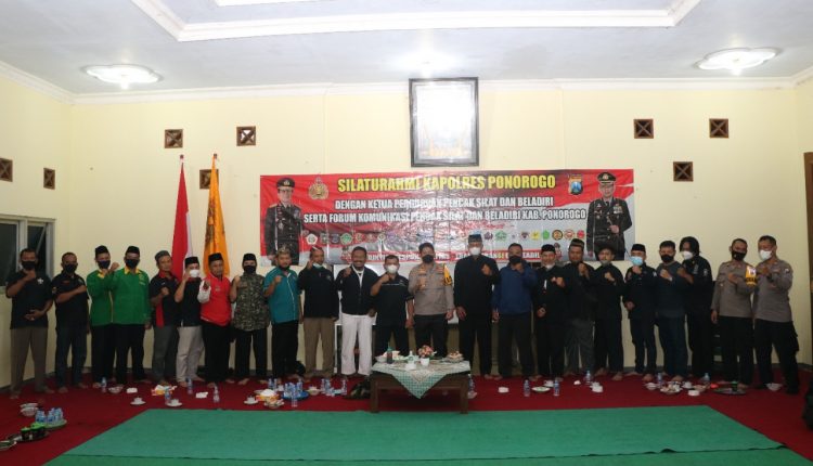 PONOROGO,ikagawanews.id –  Kapolres Ponorogo AKBP Catur C. Wibowo, S.I.K, M.H. menjalin silaturahmi dengan 26 ketua Perguruan Pencak silat Se- Kabupaten Ponorogo yang juga tergabung dalam Forum Komunikasi pencak silat dan beladiri (FKPSB) bertempat di Padepokan PSHT Cabang Ponorogo Pusat Madiun jl. Laks. Yos Sudarso Kec/Kab. Ponorogo, Jum’at malam (19/11)